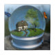 En el interior de un "globo de nieve" hay un paisaje veraniego con una cabaña cubierta de arce y cerezos. El campo de hierba de los alrededores está lleno de lirios y flores silvestres de colores vivos. Rosas y hiedra trepan la pared de la casita. Es un día de verano tardío, y mil naranjas brillantes y mariposas azules giran alrededor del mundo.