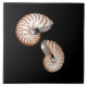 Baldosas cerámicas de 6" x 6", fondo negro con 2 hermosas conchas de naútilus.