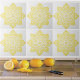 Baldosas cerámicas, medallón amarillo sobre blanco
