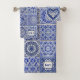 Un patrón de bonito con el aspecto de baldosas pintadas a mano del siglo XVIII de Delft y otras ciudades de Holanda, también visto en la decoración de estilo francés y en las casas de campo inglesas. El cuarto de baño tiene baldosas azules y blancas limpias. Puede agregar iniciales que aparecerán en el tamaño correcto en la esquina inferior. Pueden ser para una persona o las iniciales combinadas de una pareja.