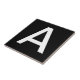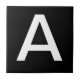 Baldosas de letras de cerámica. Baldosas de letras fundas superiores o inferiores. Usted personalizar con la letra o letras que necesita para su signo de mosaico o azulejos cerámicos. Baldosa de carta para señales meteorológicas, números de casa. Blanco sobre fondo negro.