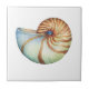 Una sola cáscara marina sobre una pequeña baldosa cerámica de 4,25" x 4,25".