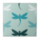 Las baldosas decorativas alternan con el diseño de la libélula en tonos oscuros, el agua y el blanco en un fondo acuático claro. Estas se coordinan bien con otro producto:
