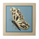 Esta es una baldosa de mariposa cerámica con oro metálico y negro. El fondo es azul con un marco dorado. Use esto en su cocina, baño o chimenea. Si te gusta la naturaleza y te preocupa el medio ambiente, entonces esto es para ti. Esto se basa en una cerámica hecha por el fabricante de baldosas Oregon, Fy Jones Day.