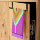 Esta toalla de cocina tiene un patrón de baldosas/abalorios de mosaico con un motivo de diamante centrado, en Serenity, una paleta de colores Pantone de la temporada de primavera 2015, con muchos colores vivos, casi neones, fuschia, berry, lavanda, naranja, azul de huevo de robin, verde lima de neón, mariposa dorada amarilla y gruta cremosa. Se puede visualizar como mosaico o rosca. Arte de Kristie Hubler. Para la temporada de primavera de 2015 los colores de moda.