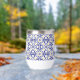 Patrón de azulejos mediterráneos tradicionales dibujado a mano. Pintura de mosaico geométrico azul mosaico y amarillo con motivos florales. El diseño decorativo perfecto, un regalo ideal para cualquier ocasión. Inspirada en azulejos portugueses, la influencia italiana, española y mediterránea.