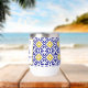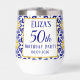 Baldosas portuguesas, azules, blancas y amarillas, Azulejo rústico, vaso mediterráneo de vino de cumpleaños número 50. Personalízalo con tus detalles.