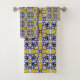 La palabra azulejo proviene de raíces árabes, que significa "pequeña piedra pulida". Las baldosas cerámicas están profundamente integradas en la historia y cultura de Portugal. Están por todas partes dentro y fuera de los viejos edificios. Hoy en día, es común verlas decorando restaurantes, bares, estaciones de tren y metro y casas comunes. También se utilizan en la decoración interior. Los azulejos antiguos estaban decorados inicialmente dominados por el blues y el blanco, y luego amarillo y verde. Esta teja de baldosas impecable se inspiró en las baldosas portuguesas que se encuentran en el barrio de Porto. Los colores azul y amarillo son mi combinación favorita. Probablemente los viejos artesanos de baldosas se inspiraron en el océano Atlántico azul, el amarillo del sol, o el oro.
