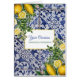 Baldosas tradicionales pintadas a mano de Portugal con limones mediterráneos. Patrón de perfección. Obra de arte de azulejos azulejo azul y blanco de hojas de flores. El diseño decorativo perfecto, un regalo ideal para cualquier ocasión. Un bonito diseño de verano mediterráneo que representa los limones amarillos con su vegetación y flores en un marco portugués de época azul y blanca.