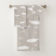 Ballenas beluga y mariscos en un fondo gris pastel de diseño de toallas de baño. Set de toallas de baño para ballenas, perfecto para todos los amantes de las ballenas o para todo aquel que esté buscando un elegante y delicado diseño de un juego de toallas de baño. © Diseño de Viviana's Tales Baby Beluga Whale. Regalos de ballena personalizados. Regalos de decoración de ballenas para el hogar.