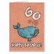 Ballena del feliz cumpleaños - 60 años de la ballena jorobada linda en una tarjeta de felicitación específica a la edad del cumpleaños. Texto interior: "Esperanza usted tiene una ballena de una época!"