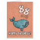 Ballena del feliz cumpleaños - 88 años de la ballena jorobada linda en una tarjeta de felicitación específica a la edad del cumpleaños. Texto interior: "Esperanza usted tiene una ballena de una época!"