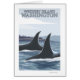 Orca Whales #1 - Whidbey, Washington - Vintage Travel Poster fue creado en 2007. Esta imagen muestra escenas de la isla Whidbey, WA.