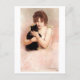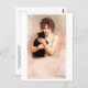 Postal de arte fino con el pastel de Pierre-Carrier-Belleuse (1851-1932), Una joven bailarina sosteniendo un gato negro (1895). Es un retrato de una bailarina de ballet de color rosa sosteniendo a su gato negro.