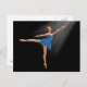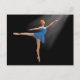 Esta encantadora bailarina presenta un estudio en gracia mientras toca un arabesco perfecto con su traje azul. Se ve maravillosa en esta postal de personalizable.