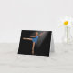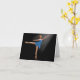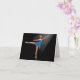 Esta encantadora bailarina presenta un estudio en gracia mientras toca un arabesco perfecto con su traje azul. Se ve maravillosa en esta nota en blanco o tarjeta de saludo.