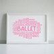 Esta tipografía de ballet palabra nube/ballet es un regalo perfecto para cualquier bailarín de ballet. Con más de 2 docenas de términos de ballet, este arte mural sería una gran adición a la habitación de su hija y un regalo de recital de baile perfecto. Si estás interesado en un color personalizado, por favor envíame un correo electrónico a susan@susannewberrydesigns.com para preguntar acerca de las órdenes de los personalizados.