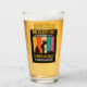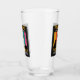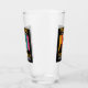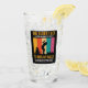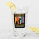 Vidrio de golf con una frase graciosa: "Cuanto más viejo me cuesta más encontrar mis bolas, te daré una bebida gratis si me ayudas a encontrarlas". Hay un fondo negro con un golfista balanceándose frente a rayas amarillas, rojas, doradas, verdes y violetas.