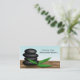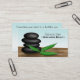 Tarjetas de visita con un tranquilo ilustracion de rocas spa y hojas de bambú en una mesa de bambú para su balneario y centro de relajación o negocios locales.