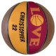 Baloncesto personalizado de tamaño completo en rojo marrón y amarillo dorado. El diseño presenta la palabra "AMOR" escrita en tipografía de chevron con un baloncesto para la letra "O". La plantilla está preparada para que añada su nombre y su número jersey o texto personalizado. Por favor, busca en nuestra tienda más regalos de baloncesto.