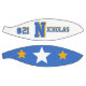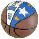 Se trata de un baloncesto de tamaño completo con dos paneles diseñados con un nombre de monograma (primera letra grande) y un número uniforme, en los colores populares de la universidad. Este se muestra en azul y oro. El segundo panel tiene colores de equipo con tres estrellas. Todo el texto, el arte y los colores se pueden eliminar o cambiar según se desee. Un panel puede dejarse blanco para autógrafos, etc.
