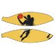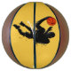 Un baloncesto con un jugador de silueta haciendo un dunk.