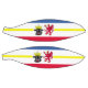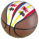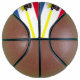 Baloncesto con bandera variante de Mecklemburgo-Pomerania Occidental; diseño con cinco rayas horizontales de rojo, blanco, azul y amarillo, y con ilustraciones de cabeza de toro y águila roja