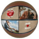 Corazón Rojo Nuestro Primer Valentín Juntos 2 Fotos Baloncesto. Baloncesto rústico personalizado con 2 fotos, tipografía moderna y de moda diciendo Nuestro primer El día de San Valentín juntos, encantadores corazones rojos, nombre y año en un fondo rústico beige. Añade tus nombres, 2 fotos y año y haz un regalo encantador para tu novio o novia que ama los deportes.