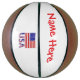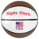 Baloncesto personalizado con la bandera de los Estados Unidos de América, o, la bandera estadounidense y las letras de abajo de Estados Unidos en rojo, blanco y azul con estrellas y rayas, encontradas en la bandera. Personalice agregando su nombre o, para un regalo creativo, agregue el nombre de otra persona. Gran regalo de diversión para tu jugador favorito. Diversión de usar en el Día de la Independencia.