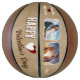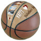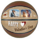 Rustic Happy Valentine Day 2 Fotos Basketball. Baloncesto de regalo personalizado con 2 fotos, corazones bonitos, nombres y año en un fondo rústico beige. Añade tus nombres, 2 fotos y año y haz un regalo encantador para tu novio al que le encantan los deportes.