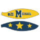 Se trata de un baloncesto de tamaño completo con dos paneles diseñados con un nombre de monograma (primera letra grande) y un número uniforme, en los colores populares de la universidad. Este se muestra en azul y oro (laberinto). El segundo panel tiene colores de equipo con tres estrellas. Todo el texto, el arte y los colores se pueden eliminar o cambiar según se desee. Un panel puede dejarse blanco para autógrafos, etc.