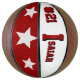 Se trata de un baloncesto de tamaño completo con dos paneles diseñados con un nombre de monograma (primera letra grande) y un número uniforme, en los colores populares de la universidad. Esta se muestra en Crimson Red y Cream. El segundo panel tiene colores de equipo con tres estrellas. Todo el texto, el arte y los colores se pueden eliminar o cambiar según se desee. Un panel puede dejarse blanco para autógrafos, etc.