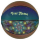 Balón De Baloncesto Nombre de arte fractal azul violeta e iluminado