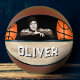 Jugador Personalizado moderno apodado Wood Floor Photo Basketball. Foto personalizado y dos balones de baloncesto a cada lado. Una luminosa cancha de baloncesto con suelo de madera. Personalízalo con el nombre y la foto del jugador. Un gran aficionado al baloncesto personalizado para recordar el deporte favorito.