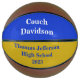 El entrenamiento de entrenadores de baloncesto premia la pelota, hecho con dos rayas de los colores de tu escuela. Personalice el texto del personalizado para leer lo que desee. Hace un gran regalo para un entrenador en un banquete de premios deportivos escolares.