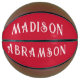 Audaz nombre de tipografía roja vintage en baloncesto rojo.