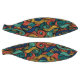 Es vibrante y llamativo, con un patrón paisajista colorido que da la impresión de estar tejido a partir de numerosas hilas de lana. La paleta de colores está compuesta por cuatro colores diferentes y vivos: amarillo, turquesa, azul oscuro y naranja. El uso del amarillo añade un elemento soleado y alegre al diseño, evocando sentimientos de calidez y felicidad. El turquesa, con sus propiedades frescas y tranquilizantes, contrasta maravillosamente con el amarillo, creando un efecto visual equilibrado y armonioso. El azul oscuro introduce profundidad y riqueza en el patrón, anclándolo y proporcionando una sensación de estabilidad. La adición de naranja es una elección audaz, infundiendo energía y vitalidad en el diseño. Sirve como un llamativo color de acento, llamando la atención sobre elementos específicos dentro del patrón paisley. En general, el diseño es una deliciosa combinación de colores y patrones, con un ambiente animado y lúdico, manteniendo al mismo tiempo una sensación de sofisticación y calidez. Es perfecto para añadir un toque de fantasía y creatividad a varios productos y ambientes, desde textiles y moda hasta decoración interior y obras de arte.
