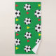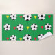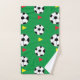 Toalla de baño de bolas de fútbol diseñada por Nisha Prabhu. Este juego de toallas de baño con tema de fútbol es justo lo que necesitas para expresar tu amor por el fútbol. El diseño incluye grandes pelotas de fútbol con banderas rojas y amarillas sobre fondo verde. Regalos deportivos para entrenadores de fútbol, equipos de fútbol, hinchas de fútbol, futbolistas, futbolistas, amantes del fútbol.