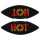 Caliente con la letra O hecha de un círculo de llama con pimientos de chile.