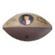 Rústica Felicitaciones Grad Black Graduation Photo Football. Fútbol personalizado con gorra de graduación, texto personalizado y una foto en un marco redondo sobre un fondo rústico beige. Un gran regalo y un básquetbol de sake para un graduado que ama los deportes.