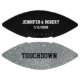 Fútbol boda hecho con un purpurina plateado impreso en la parte inferior de la bola, con texto personalizado leyendo Touchdown. La mitad superior de la bola, está hecha en negro sólido, con texto blanco personalizado. Personalice el texto con los nombres de la novia y del novio, la fecha del boda y cualquier mensaje que desee. Gran idea de regalo para la pareja recién casada.