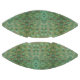 Las plumas de la cola de un pavo real se muestran de cerca y embaldosadas, dando lugar a un efecto Kaleidoscópico. Los verdes y los azules son prominentes en los "ojos" de las plumas.