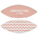 El fútbol de personalizado de novias y novios se realiza en durazno pálido, en la mitad de la parte superior y en un patrón de chevron blanco y melocotón, en la otra mitad de la parte superior. Personalice el texto en negrita y en blanco los nombres de la novia y del novio y la fecha de boda. Bonita idea de regalo para la pareja de hinchas de fútbol.