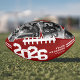 ¡Felicitaciones Grad! Muestre su aprecio con este obsequio de fútbol de graduación personalizado y único en su especie. Con un atractivo diseño de año de clase en una fuente variada, 4 fotos del grado, dos franjas blancas, su nombre y la escuela o universidad a la que asistieron. Este fútbol rojo personalizado durará mucho después de la graduación, dándole al afortunado graduado un preciado recuerdo de este día trascendental.