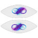 Símbolo infinito con una hermosa pluma pintada de color violeta y azul brillante sobre fondo blanco.