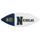 Se trata de un futbol de tamaño completo con un panel diseñado con un nombre de monograma (primera letra grande) y un número uniforme, en los colores populares de la universidad. Esta se muestra en azul y en oro de aspecto metálico. El futbol también está disponible con dos paneles blancos para que un segundo panel pueda incluir diseños o espacio para firmas.