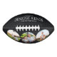 Fútbol personalizado con 3 de tus fotos favoritas y divertida cita futbolística que dice "te amo a la zona final y de vuelta". El diseño se asienta sobre un fondo de cuero impreso en negro con tipografía blanca. La plantilla de fotos está lista para que subas tus fotos - si tienes problemas para que se vean bien en los círculos, te recomendaría recortarlas a un cuadrado antes de subirlas.