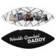 A unique personalized fathers day football gift featuring a stylish black and white theme, add 5 of your own family pictures of the dad and his kids, the words "worlds greatest daddy", and the childrens names.