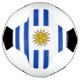 Bandera nacional de Uruguay: Pabellón Nacional) es una de las tres banderas oficiales de Uruguay junto con la bandera de Artigas y la bandera de la Treinta y Tres. Tiene un campo de nueve rayas horizontales iguales que alternan blanco y azul. El cantón es blanco, cargado con el sol de mayo, desde el que se extienden 16 rayos, alternando entre triangulares y ondulados. La bandera fue adoptada por primera vez por ley el 16 de diciembre de 1828, y tenía 19 franjas hasta el 11 de julio de 1830, cuando una nueva ley redujo el número de franjas a nueve.