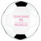 Fútbol personalizado con el nombre del equipo, número de equipo y nombre del jugador. Puedes personalizar fácilmente la pelota. El texto es de color rosa sobre un fondo blanco - genial para un chica que ama este deporte. Ideal para un futbolista, un amante del fútbol, como regalo o una pelota de aguijón.